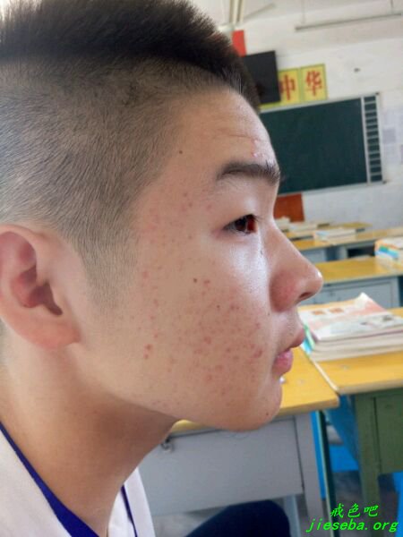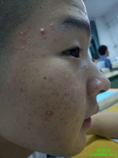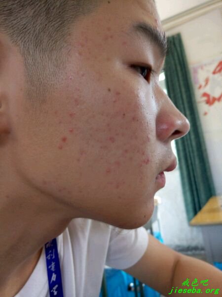 爆最近的照片, 脸上还是有痘印